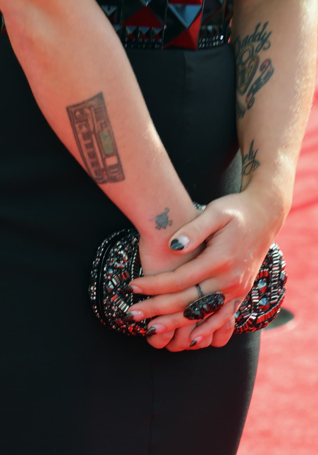 La famosa cantante es otra fan de los tatuajes. El símbolo de amor y paz de John Lennon en la muñeca; la frase "Little monsters" en el brazo en honor a sus fans; un corazón, margaritas y la frase "Amo a Tokio" en la espalda; un unicornio en el muslo; un ancla en la costilla y un gigantesco tatuaje de flores en la cadera, son algunos de ellos.