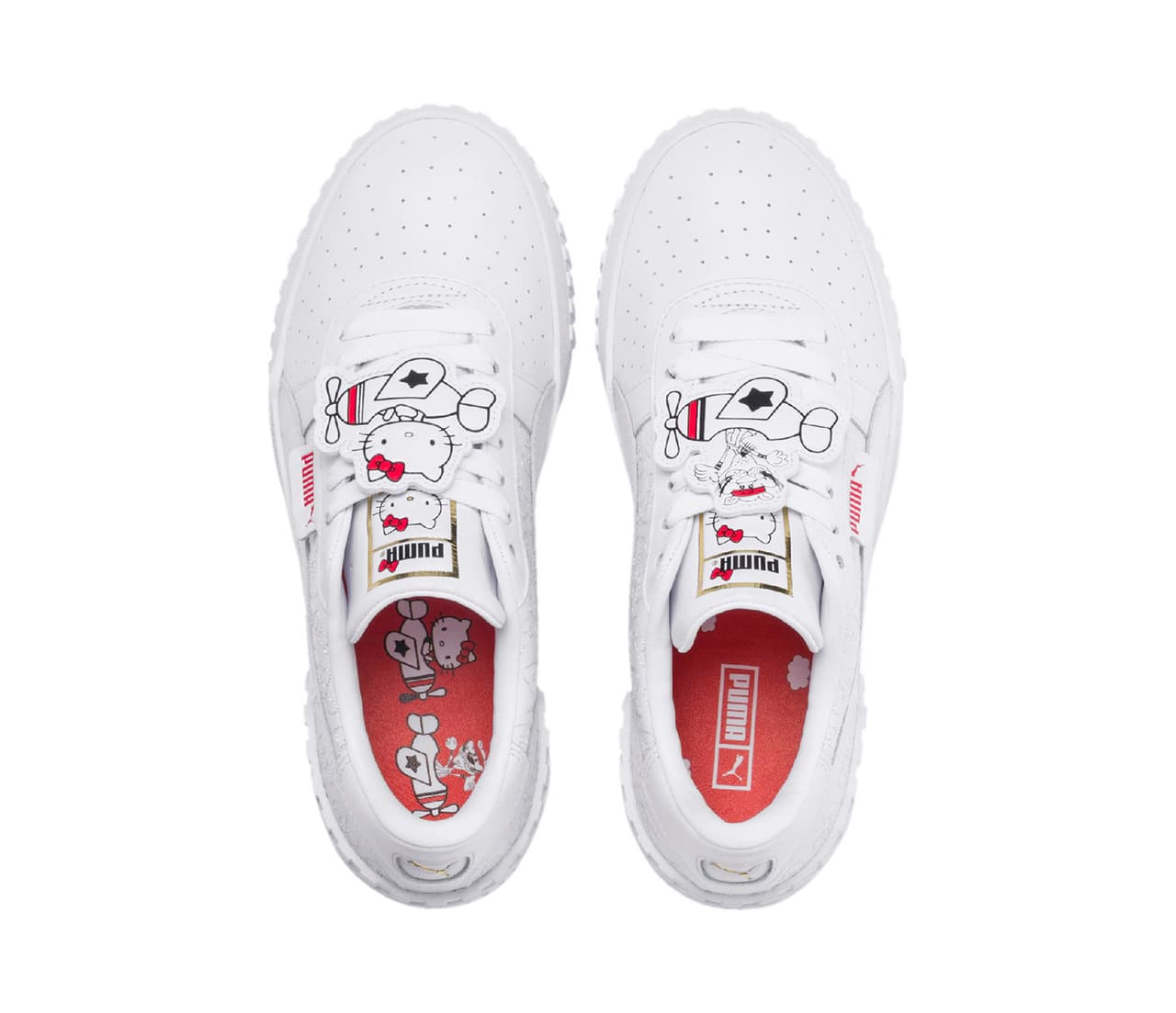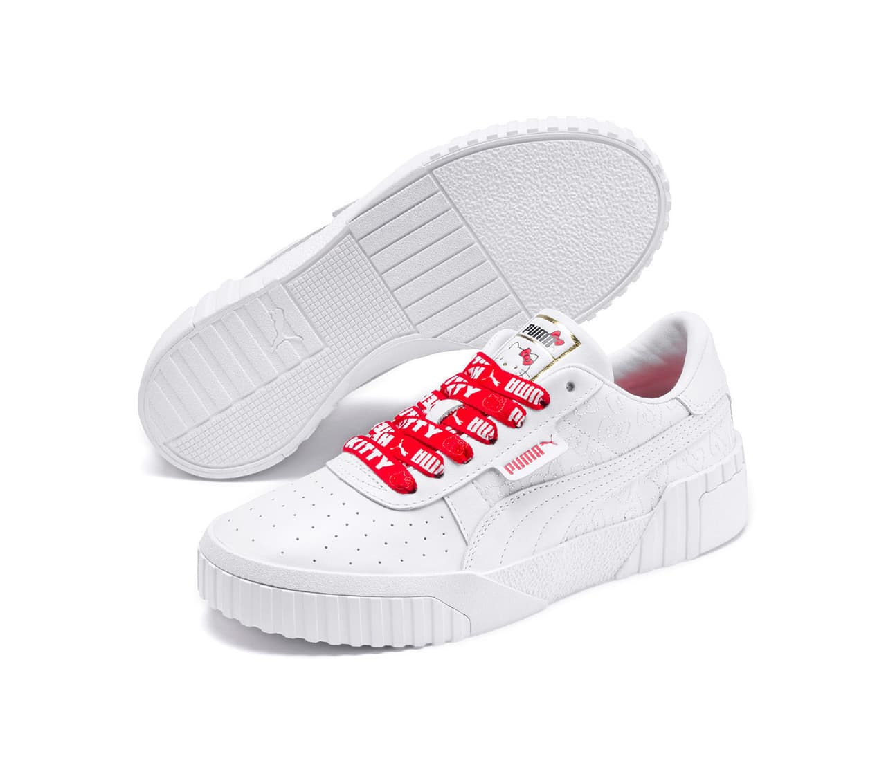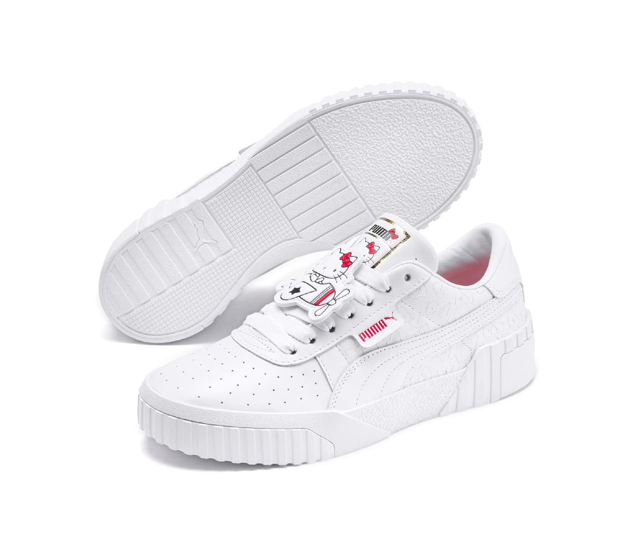 En caso de buscar unos tenis blancos, el modelo PUMA x Hello Kitty Cali es para ti. La parte del exterior luce un sutil bordado de su tradicional moño.