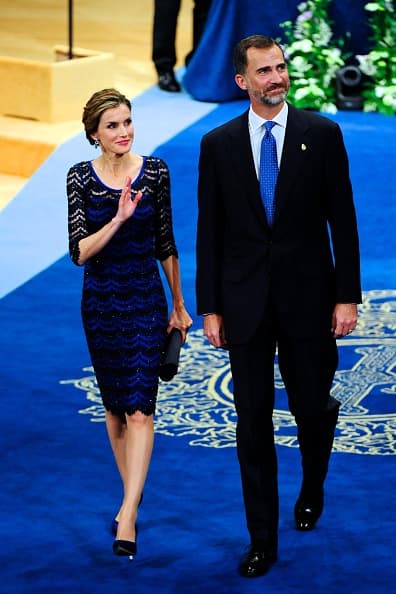 Royal blue is a color that looks absolutely beautiful! One thing I've noticed is that unlike most women, Letizia wears her hair up when she's sporting a cocktail dress. The messy hair is an excellent option that compliments Leonor and Sofia's mom very well.