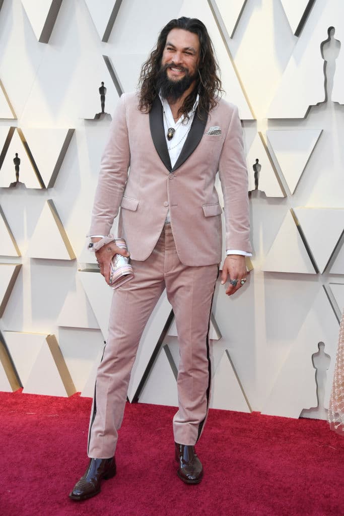Jason Momoa en traje rosado lució más hermoso que sin camiseta: las fotos de los Óscar lo confirman