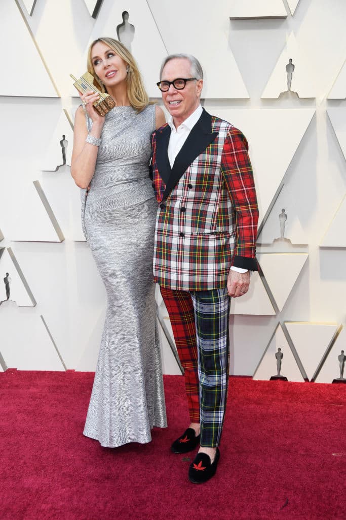 El diseño es de Tom Ford y al verlo parece que tiene piezas de cristales fragmentadas y pegadas al vestido ajustado al cuerpo. El brillo continua en un espectacular cuello alto y el corte largo hasta los pies definen su silueta.
