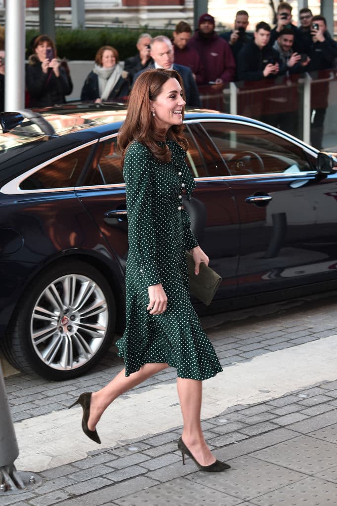 El verde es uno de los colores más elegidos por Kate, una de sus tendencias favoritas. Y lo combinó con otra de sus tendencias más usadas: los lunares.