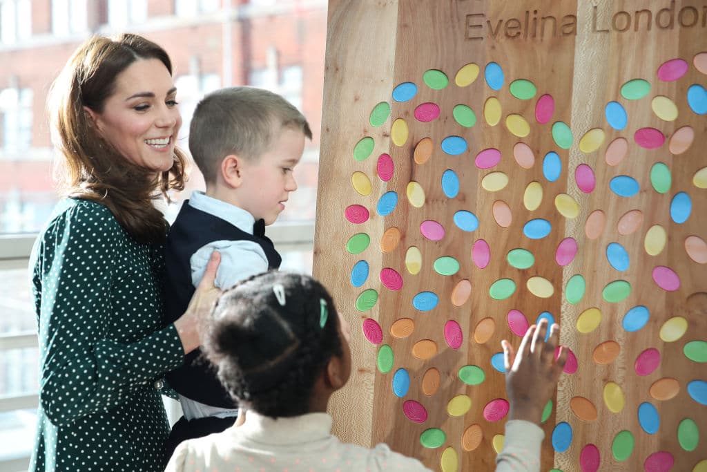 El look fue elegido para la visita al hospital de niños Evelina, en London. Este hospital apoya y atiende a los niños con enfermedades raras y el evento fue para anunciar el patrocinio por parte del palacio de Kensington, de acuerdo a Harper's Bazaar.