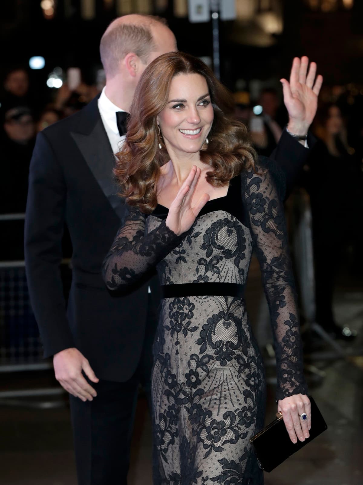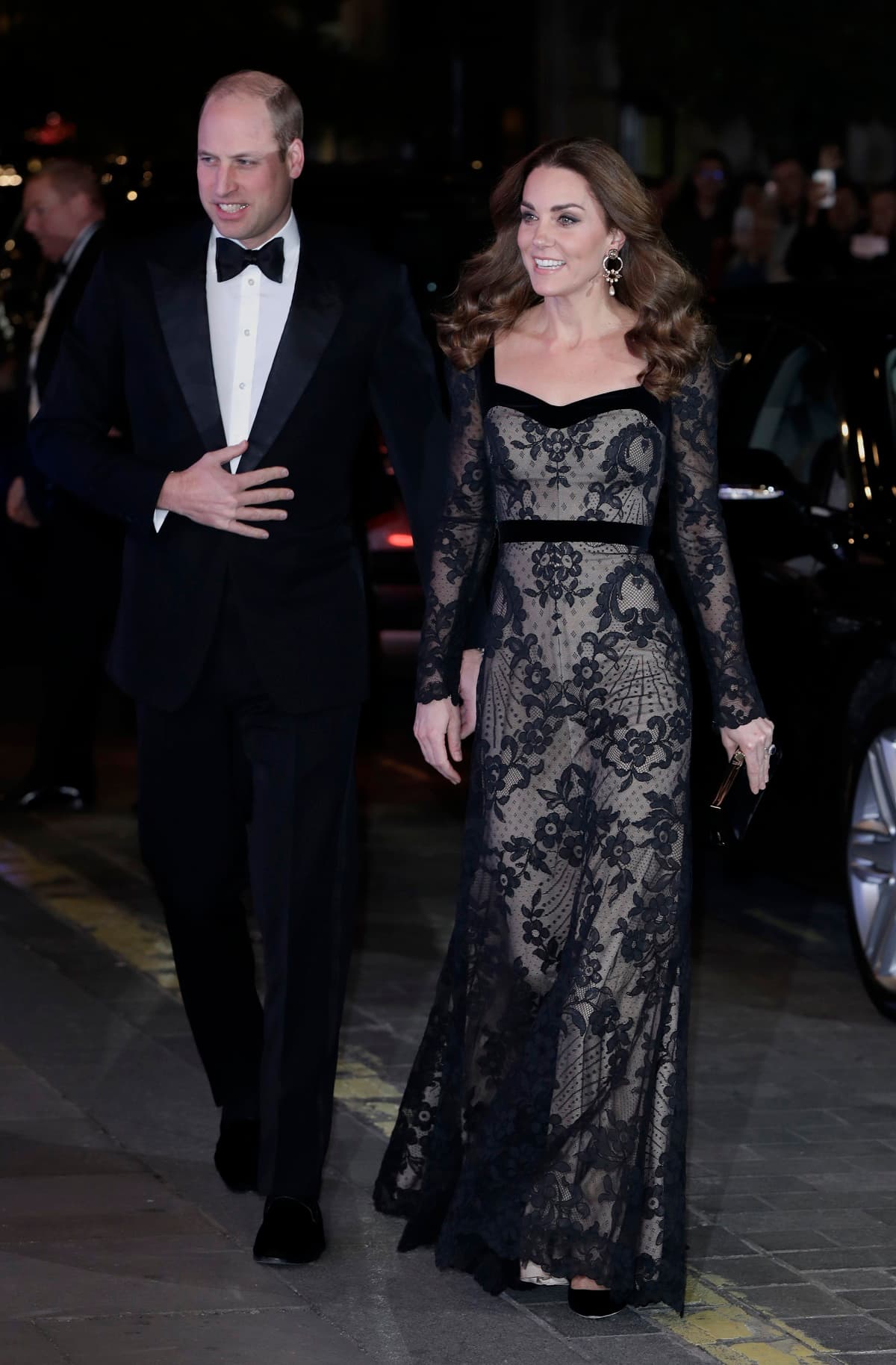 Fue allí donde Middleton impactó al público con un elegante vestido negro de encaje, con forro en tono nude. Con este outfit confirma que las prendas con transparencias son su apuesta preferida cuando quiere brillar en un evento de noche.