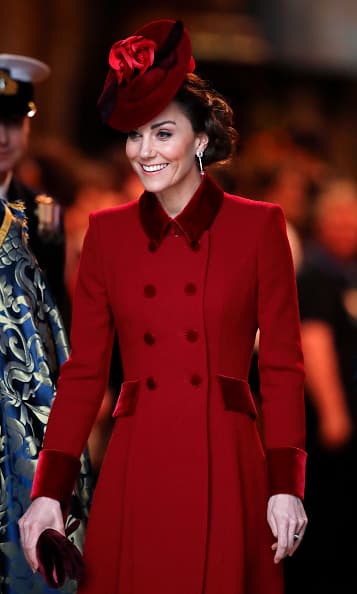 Para el acto, celebrado en Westminster, Kate se encargó de recuperar el abrigo burdeos de Catherine Walker con el que asistió a la misa de Sandringham durante las Navidades de 2018.