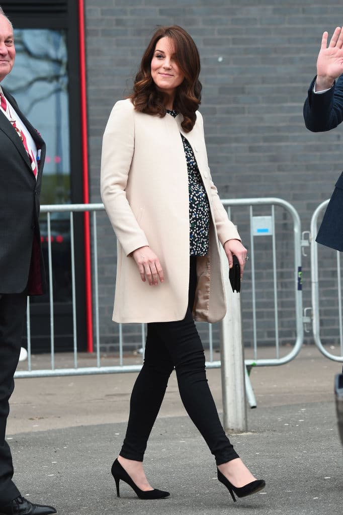 La duquesa lucía su pancita de embarazada en un hermoso look informal.