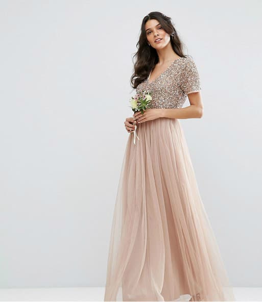 Para las que quieren algo de glamour, este vestido de ASOS lo tiene todo: elegancia, delicadeza y un top brillante.