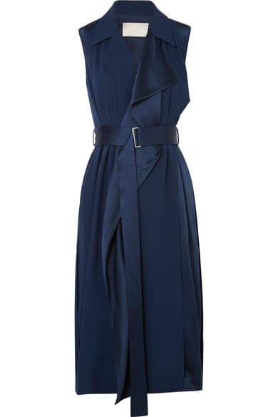 Meghan lució un vestido sin mangas azul navy del diseñador estadounidense Jason Wu. Su valor es de 1795 dólares y se consigue en la tienda online net-a-porter, pero puedes encontrar un diseño muy parecido y muchísimo más económico en la tienda everlane.