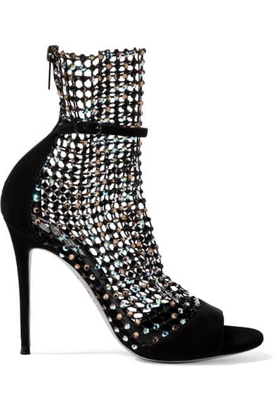Las botas de René Caovilla están a la venta online y cuestan 1640 dólares, de acuerdo a Harper's Bazaar. Estos zapatos de edición limitada (que también vienen en rojo) son de gamuza y tienen una malla con adornos de cristal.