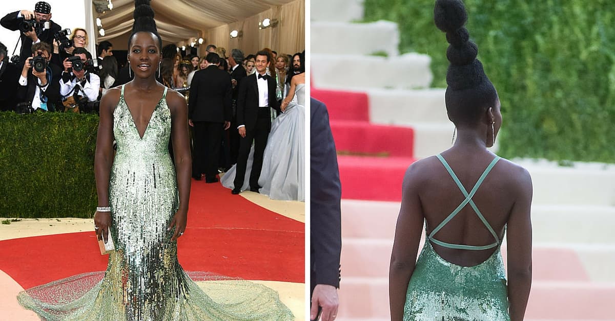 Tengo que admitir que amo a Lupita, me encantan todos sus looks. Pero este vestido es algo extraño y su peinado no tiene explicación alguna.