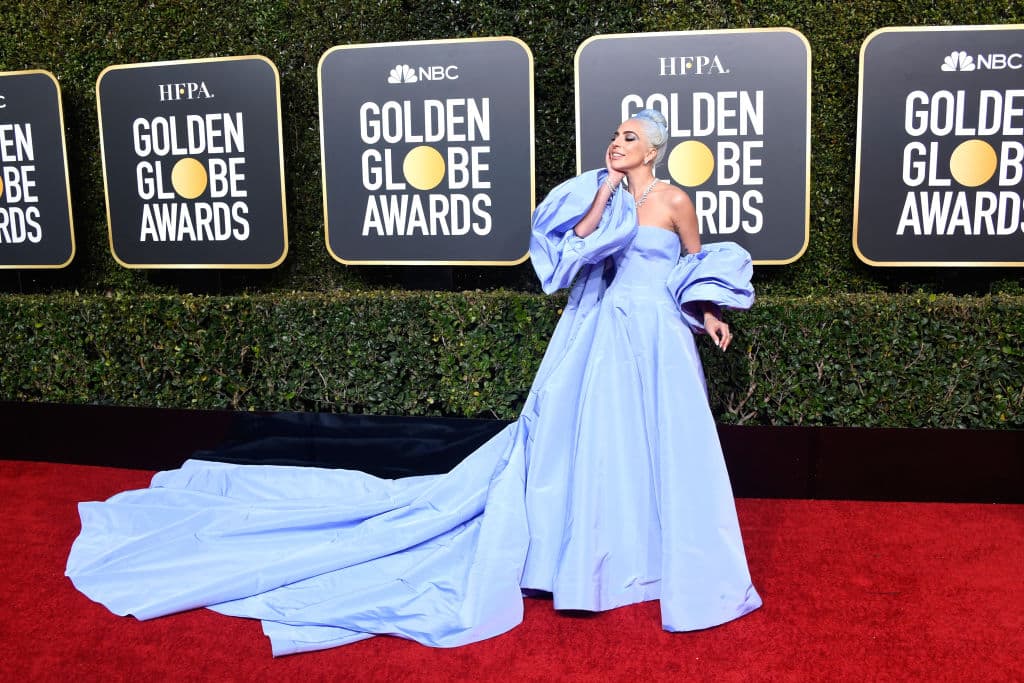 Lady Gaga asistió a la alfombra roja de los Golden Globes con un vestido celeste (al igual que su cabello). De acuerdo a Elle, el look fue diseñado por Valentino y no sabemos qué es más hermoso: si la caída, sus mangas o su color.
