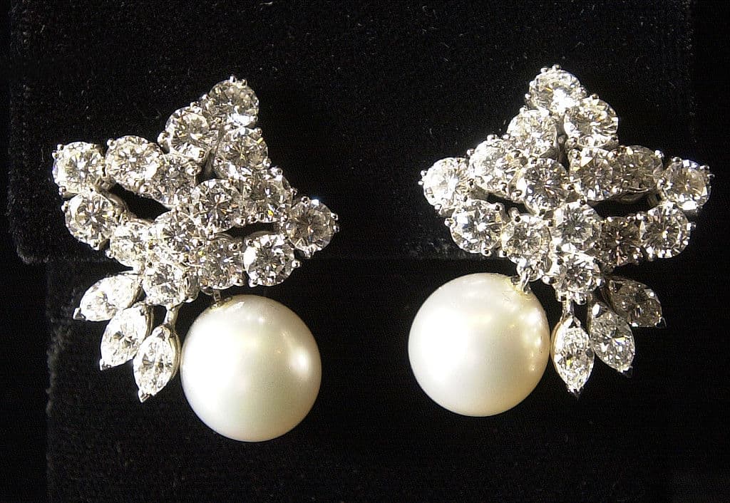 Los aretes con incrustaciones de diamantes y grandes perlas blancas colgando de ellos fueron de los favoritos de la princesa de Gales, ¡son hermosos y muy elegantes!
