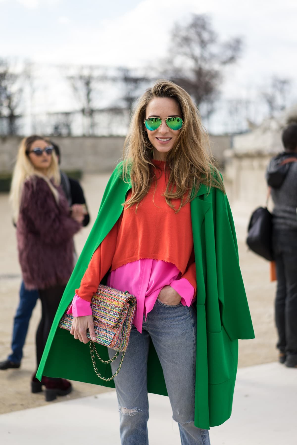 Arriésgate usando tonos vibrantes en tu capa y combínalos con unos jeans para dar un equilibrio a tu atuendo.