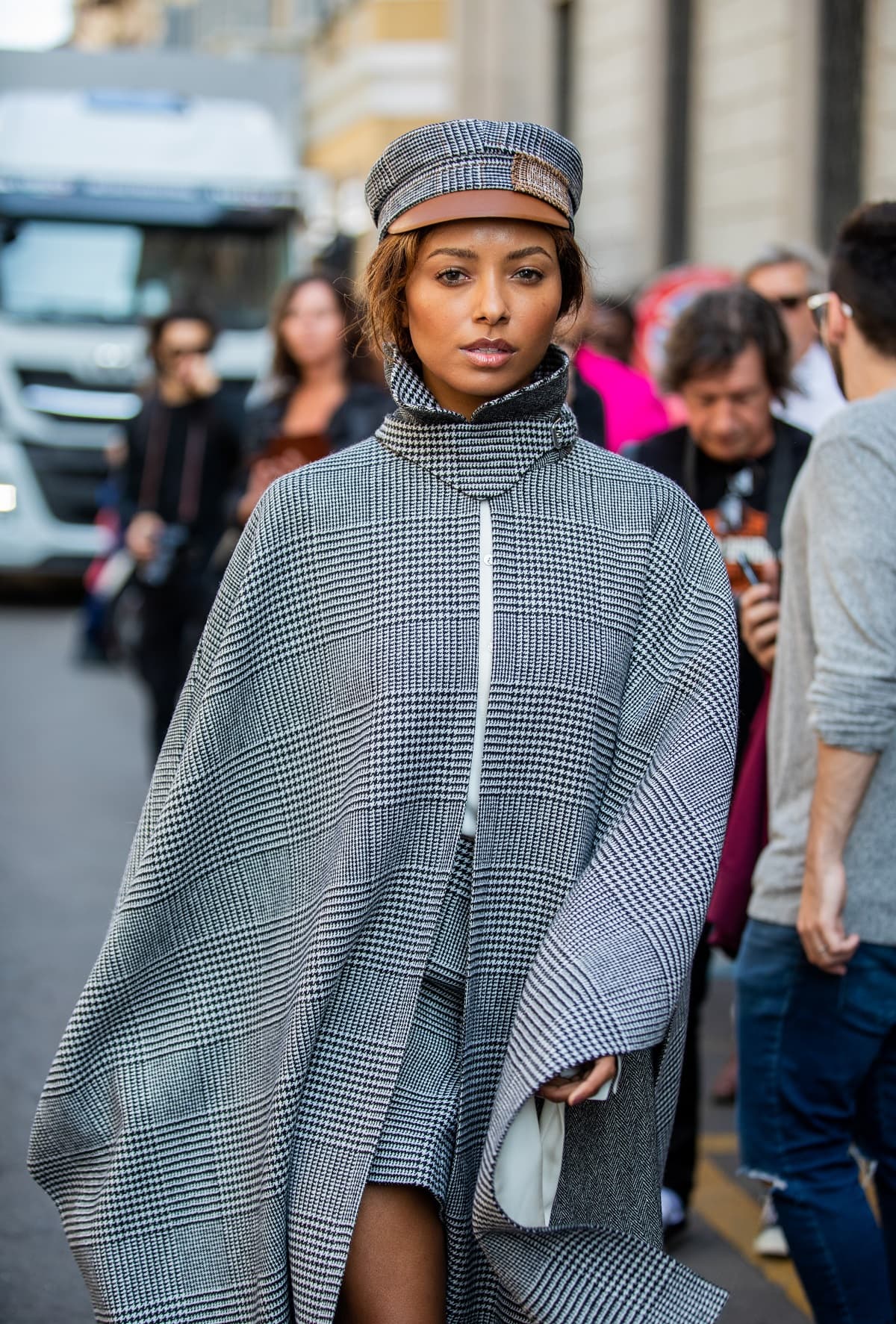 Si buscas un look más extravagante, olvídate de las capas lisas y dile hola a los estampados como los cuadros o pata de gallo. Elige un accesorio como una boina de la misma tela, para crear una armonía visual en tu outfit.
