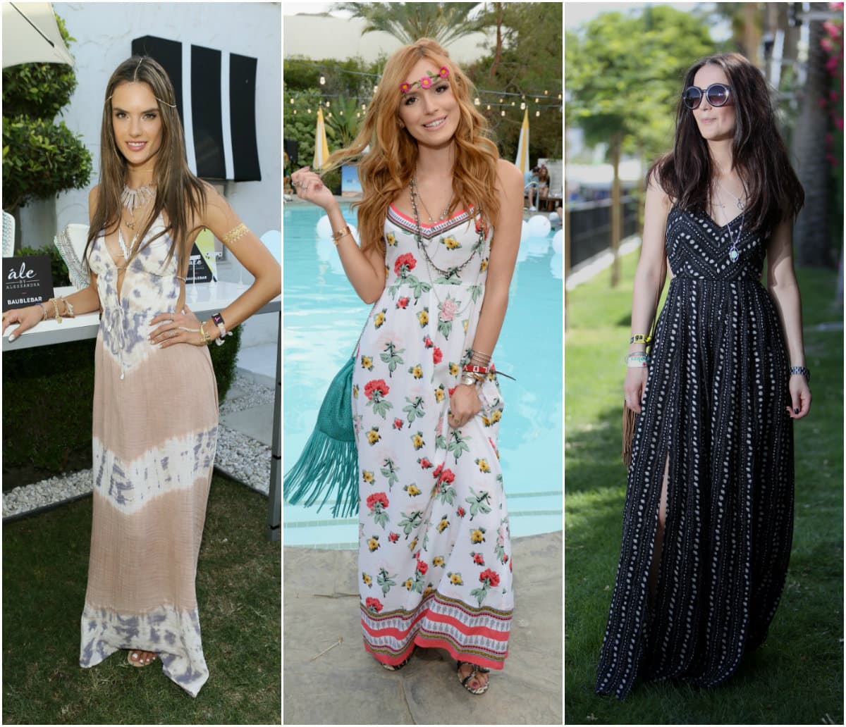 Estampados, largos y femeninos, los maxi vestidos fueron una prenda muy elegida en Coachella.
