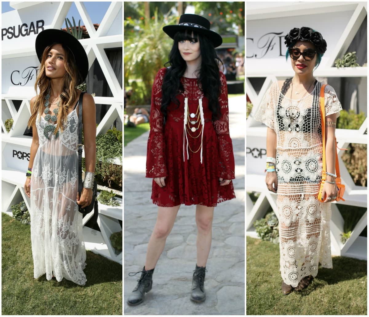 El encaje también fue parte de las tendencias de Coachella con vestidos largos y femeninos, cortos y atractivos o en blusas. Fueron una opción romántica y a la moda para vestir en esta ocasión.