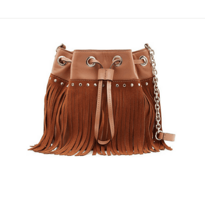 Sin esforzarte demasiado lograrás un look sencillo pero estupendo, la clave es elegir un bolso audaz y a la moda como este con flecos. Añade un esmalte de uñas para un touch de color y tendrás un gran look boho nude.