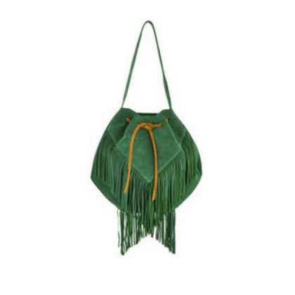 Combina unos skinny jeans rotos con una camisa azul de lino súper atractiva. Agrega unos flats verdes con estampado de flores, originales y lindos, y combina con un fabuloso bolso de gamuza con flecos.