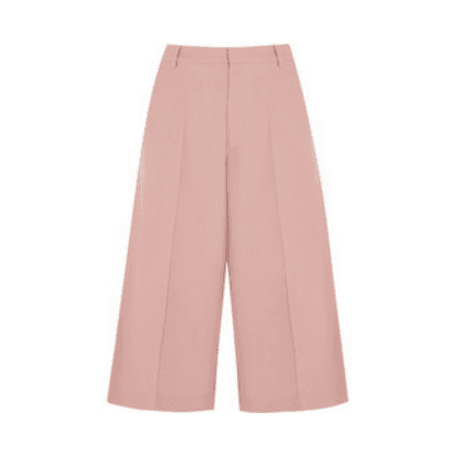 Para este look súper femenino la clave está en elegir unos originales pantalones palazzos, y los capri son la última tendencia. Elige un color femenino como el rosa viejo y combina con una blusa sencilla beige.