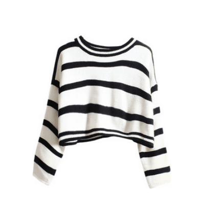 La clave está en elegir un enterito de denim corto, combinarlo con un suéter corto a rayas en blanco y negro y unas zapatillas blancas. Y tendrás un look casual súper atractivo.