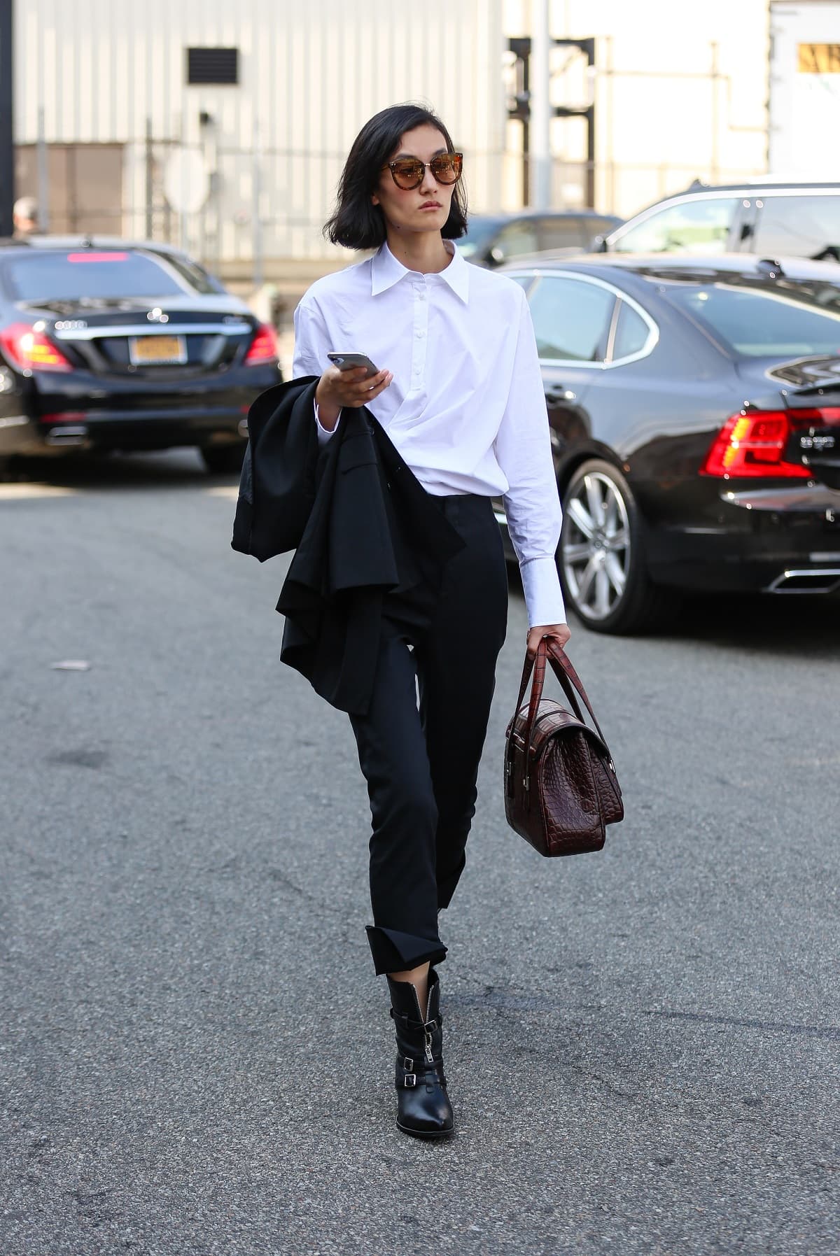Con una bolsa de mano y un blazer le sumarás puntos de sofisticación a tu outfit. Es un look ideal para ser toda una girl boss en la oficina.