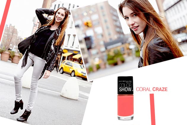 ¿Te animás a combinar jean clarito con campera de cuero? Queda muy bien. Le podés sumar a tu look este tono rosa anaranjado en tus uñas , que no es ni tan rosa ni tan naranja.