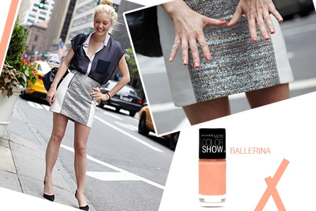 Camisa y pollera, un hitazo. Un look súper canchero de día que puede transformarse en nocturno. Combinado con un tono de esmalte dulce y romántico que contrasta con las prendas elegidas.