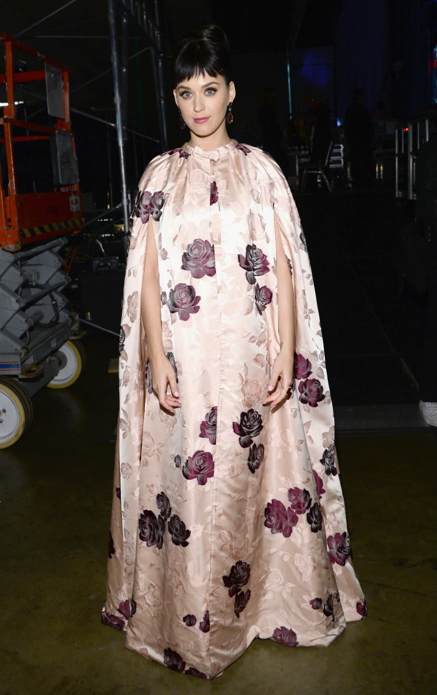 Katy Perry tiene un diseño excéntrico y particular y muchas veces sus looks no logran marcar tendencia. Un vestido súper criticado fue el de Dolce & Gabbana con estampado de flores y capa que no mostraba su figura y la hacía ver mayor.