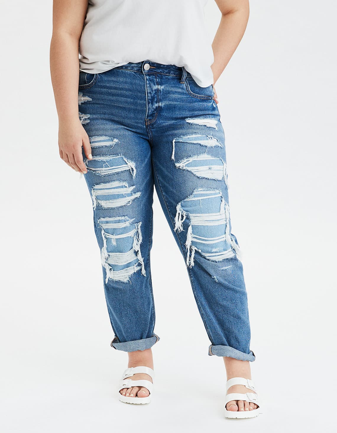 Generalmente están hechos con una mezclilla más rígida, por lo que puede favorecer tu figura. Agrégale comodidad a tu look con una tshirt flojita y unas sandalias.