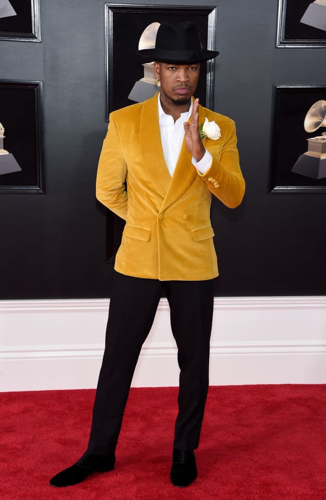 El rapero demostró que sabe lucir un saco color mostaza, además lo combinó perfecto con un sombrero negro y su rosa blanca.