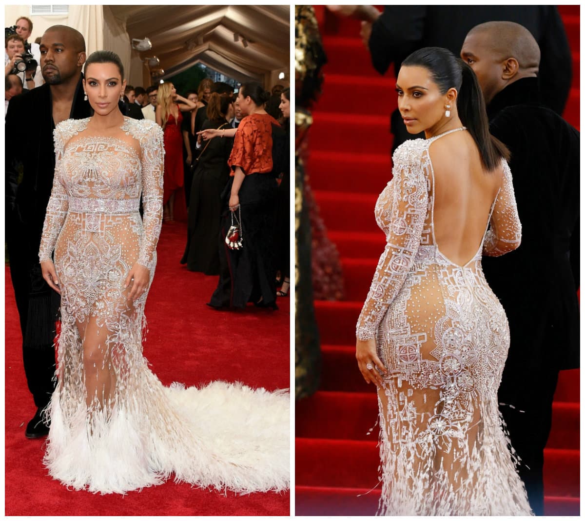 La celebrity Kim Kardashian también eligió asombrar a todos con brillos y transparencias con un vestido blanco de Roberto Cavalli.