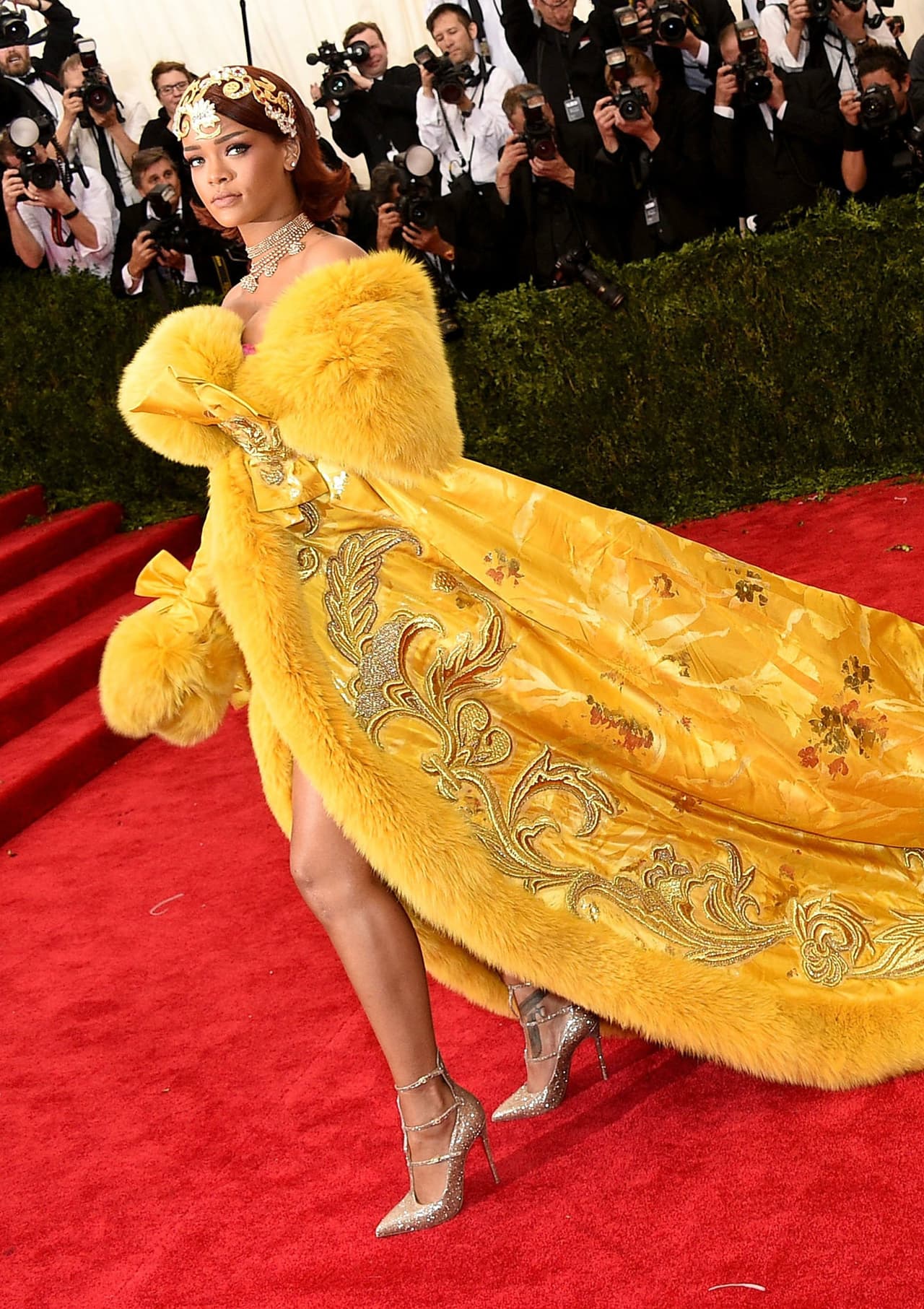 No es la primera vez que la cantante Rihanna llama la atención con sus looks. En esta ocasión eligió un vestido de Guo Pei Couture en un amarillo fuerte.