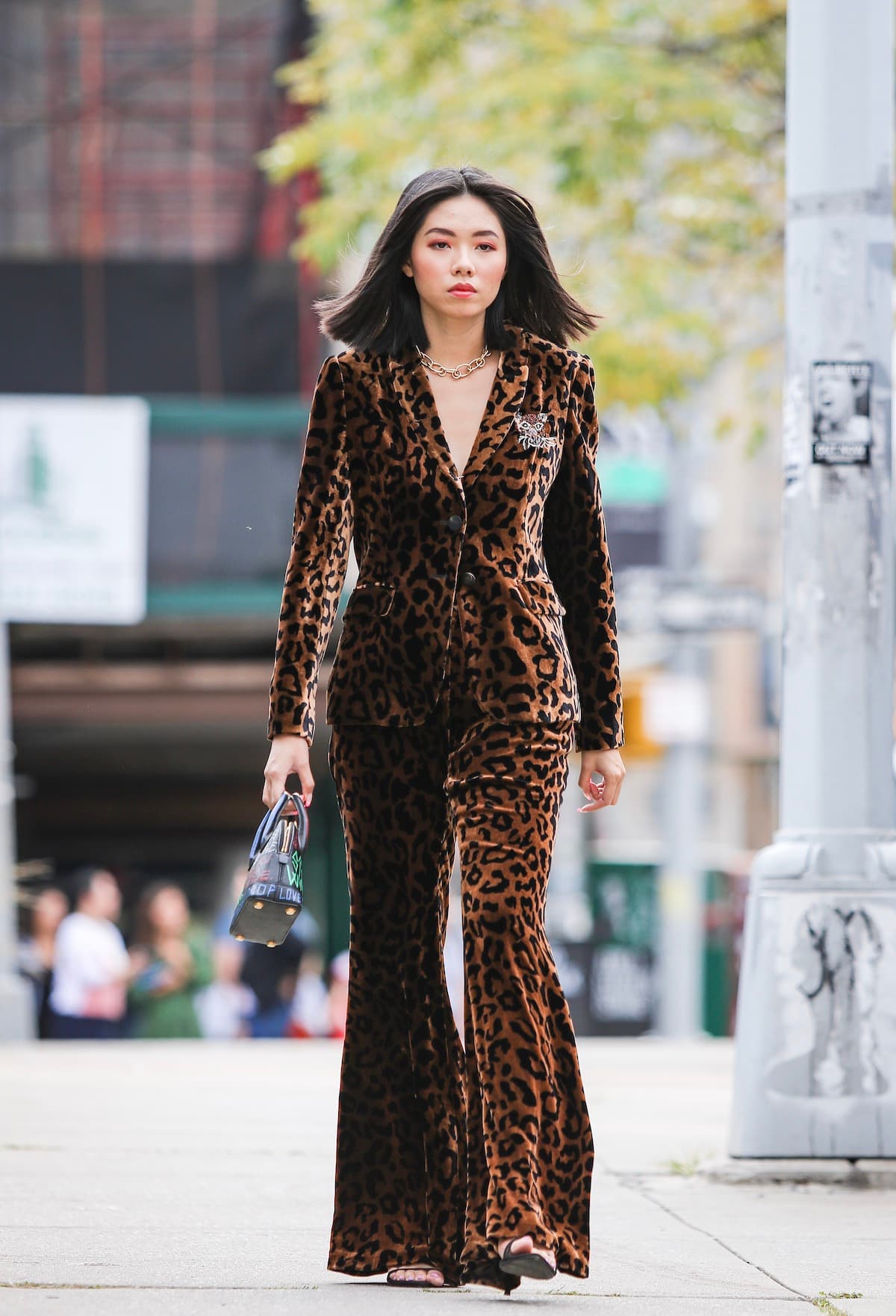 Ahora bien, si no quieres un look tan llamativo puedes incorporar el animal print sólo en tu pantalón y combinarlo con una blusa en tono contraste a la prenda estrella.