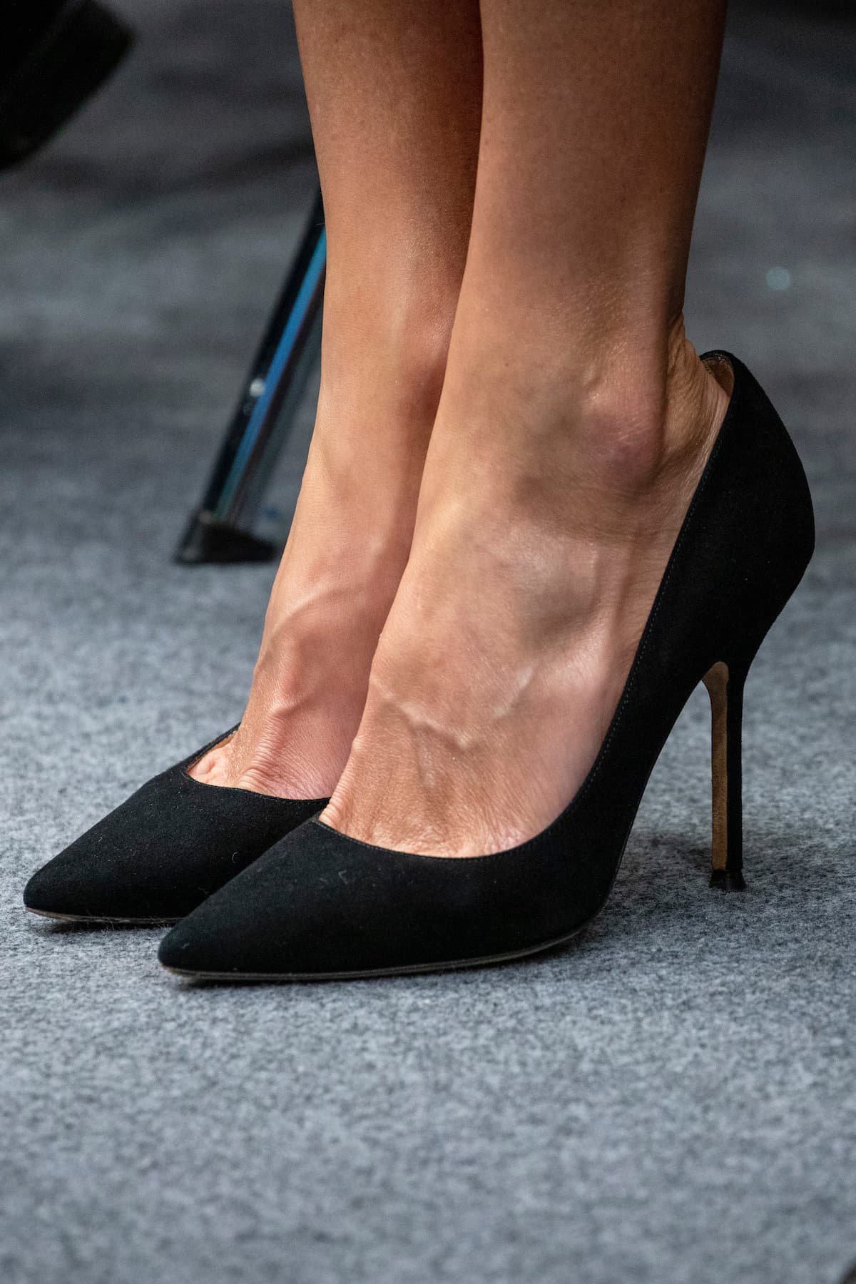 Para elevar su look, la monarca agregó unos tacones con punta en 'V' para lucir mucho más alta.