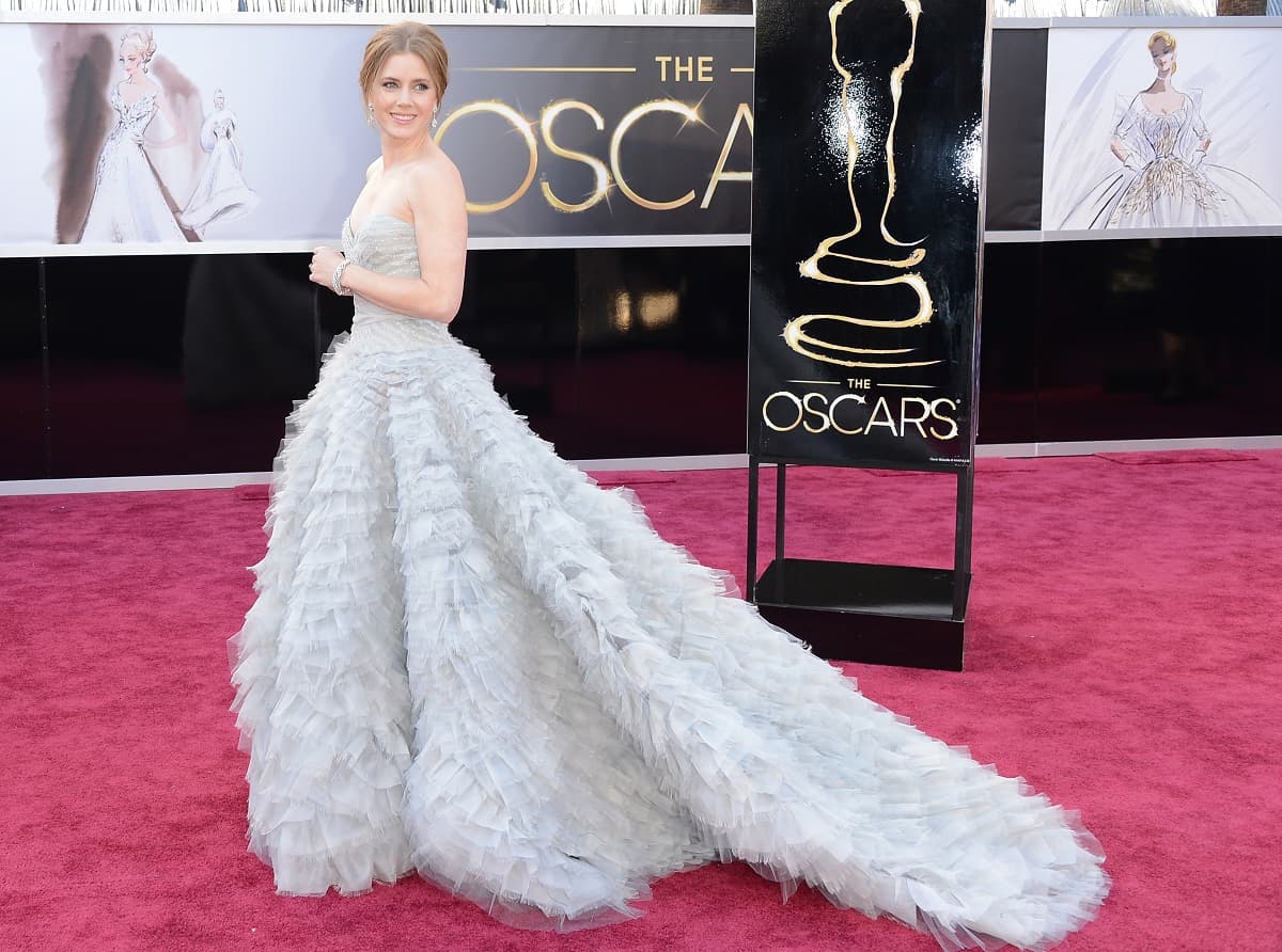 Amy Adams lució como una princesa con este diseño de Oscar de la Renta. La actriz llevó este vestido claro en los Oscar del 2013.