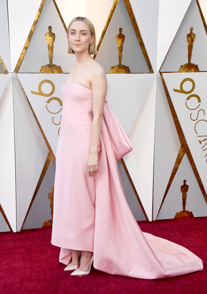 El vestido palo de rosa, diseñado por Calvin Klein, nos dejó convencidas del excelente sentido de la moda que tiene la actriz Saoirse Ronan.