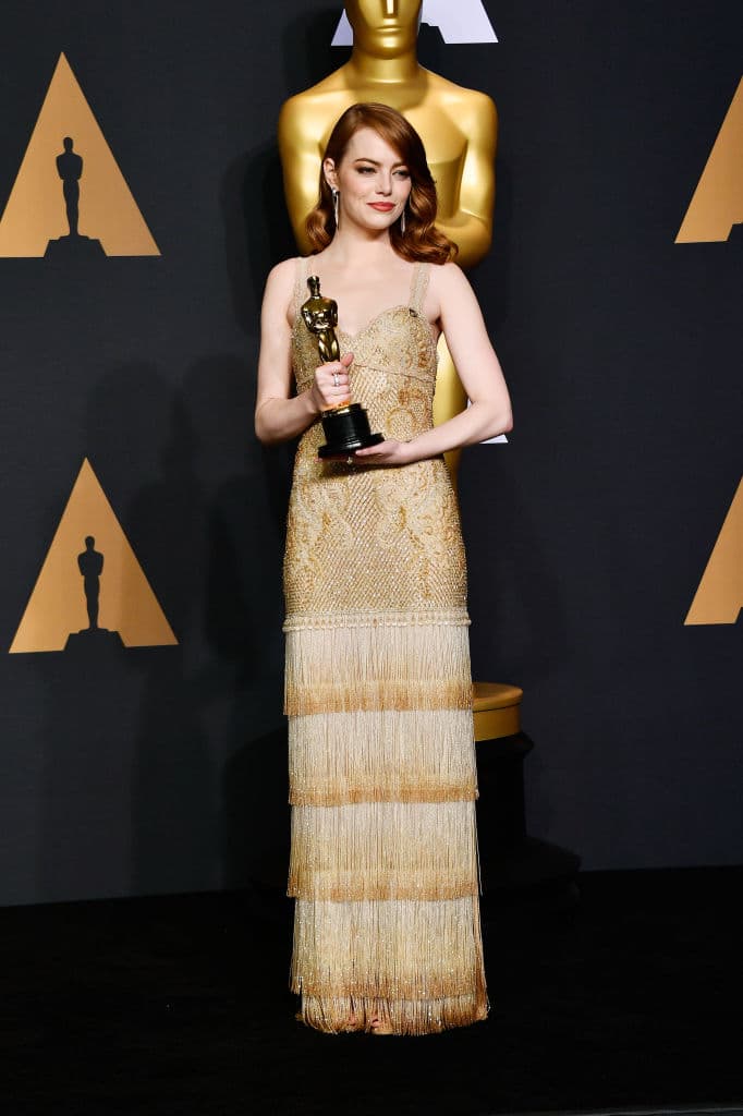 Otra que brilló con su talento y belleza fue Emma Stone. Quedamos sorprendidos con el hermoso vestido de Givenchi que llevó mientras recibía su premio a mejor actriz en 2017, por su actuación en La la land.