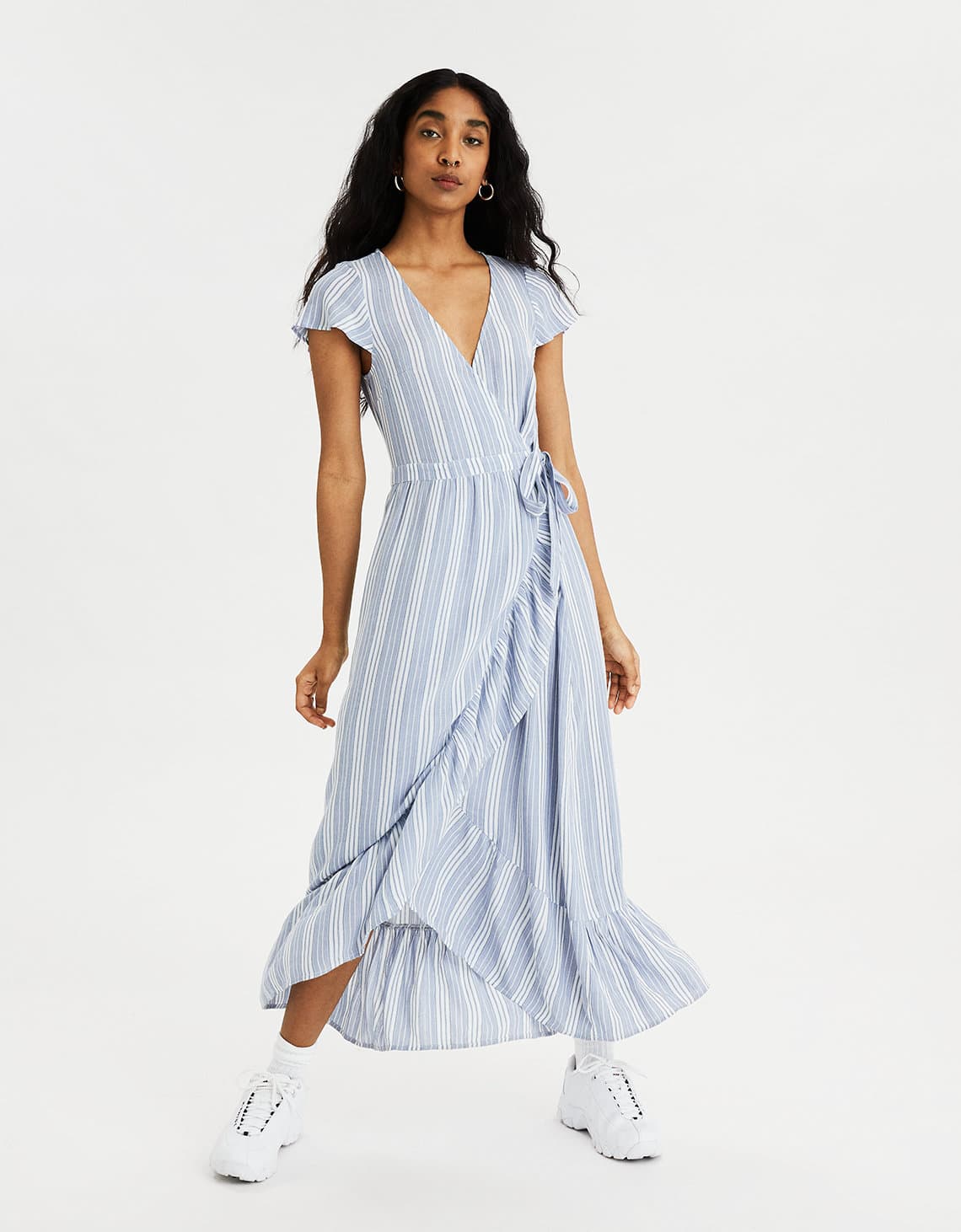 Combina este vestido con unos tenis blancos sencillos, para un estilo relajado con toques chic.