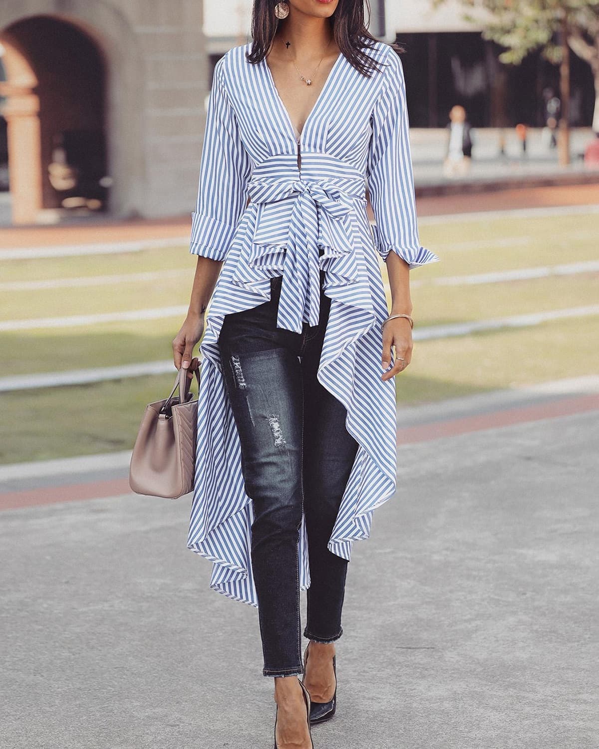 Las blusas asimétricas también se pueden llevar con faldas. La industria de la moda es para proponer, así que no te quedes atrás y prueba esta combinación. La comodidad y la sencillez estarán de tu lado.