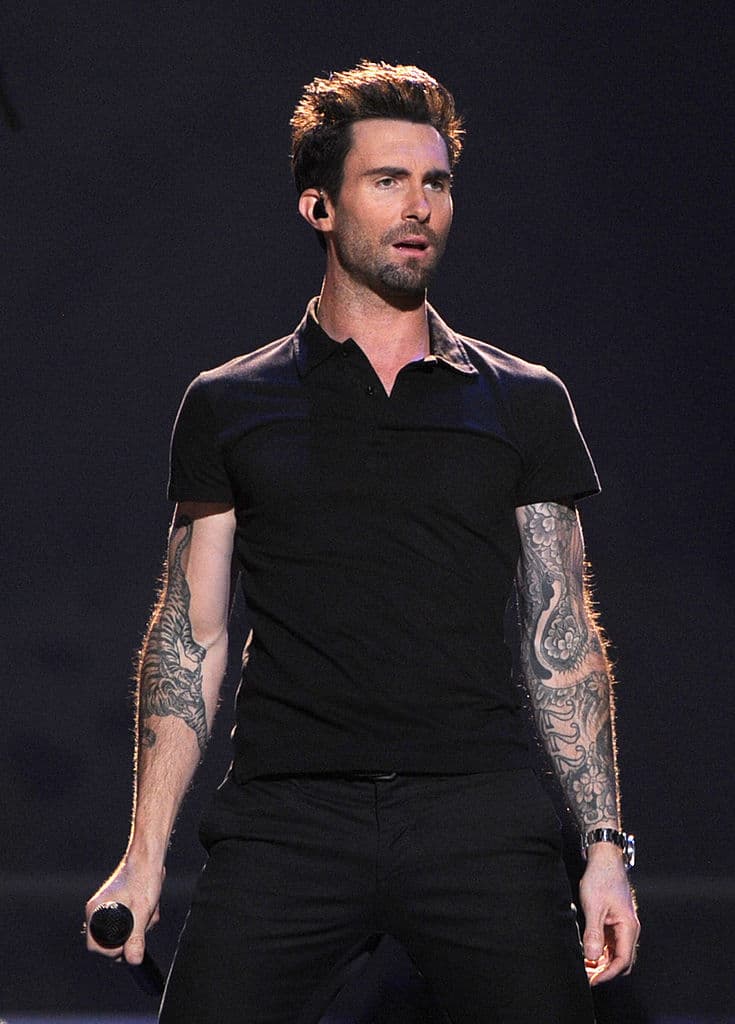 El cantante de la banda Maroon 5 tiene varios tatuajes en los brazos, el pecho y la espalda.