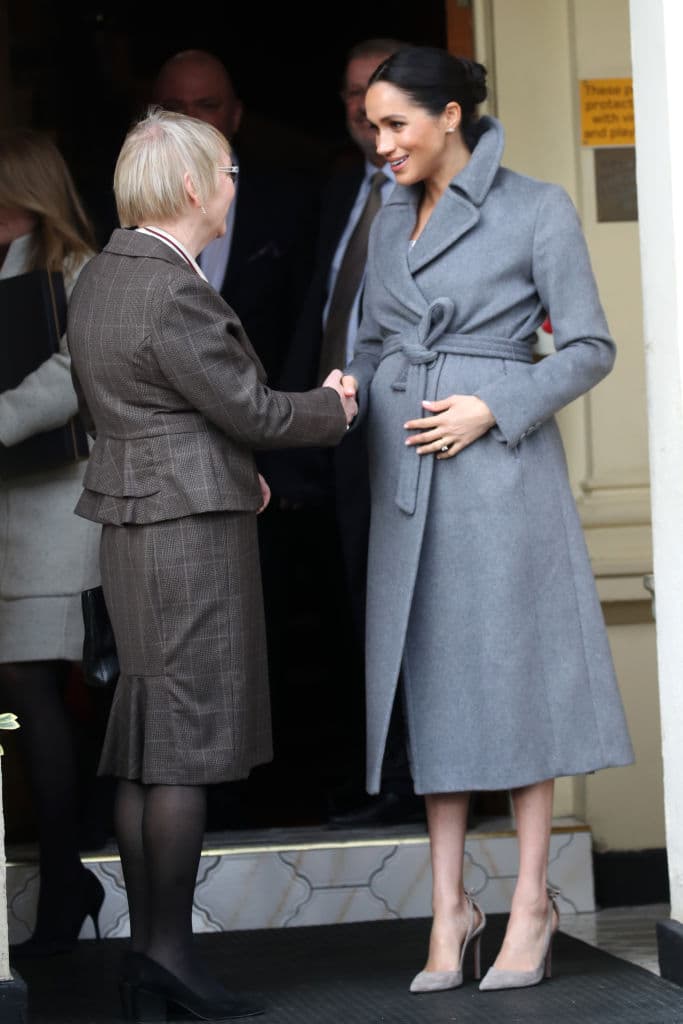 Como es de costumbre, Meghan usó un abrigo completamente hermoso para cuidarse del invierno del Reino Unido. El tapado es de Soia & Kyo, marca canadiense, y lo puedes comprar online a 550 dólares.