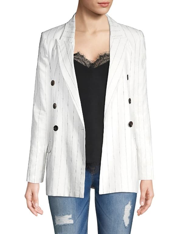 La estrella del show fue el saco. Se trató de una pieza blanca que se inclinó más a lo casual por su largo, sus delicadas franjas y los botones negros y de gran tamaño. Este pertenece a la marca L'Agence y, como sucede con todo lo que se pone Meghan, ya está agotado.
