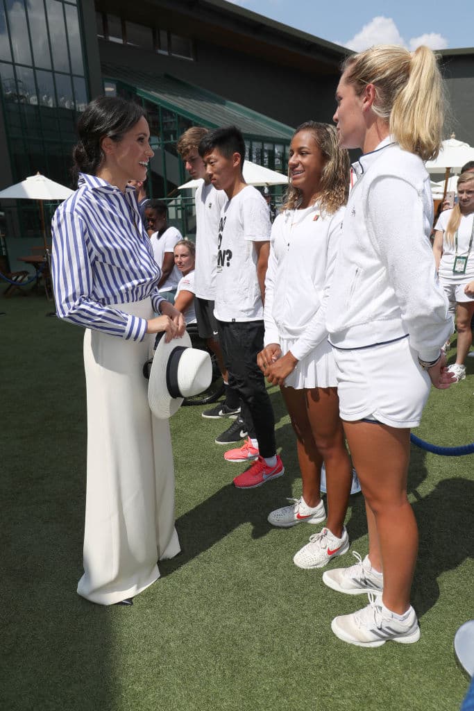 Desde que se unió a la familia real, Meghan Markle había hecho a un lado la ropa casual para usar prendas formales y elegantes en sus apariciones públicas. Sin embargo, esta vez ella volvió a aparecer frente a las cámaras para un evento más casual: el torneo de tenis de Wimbledon.