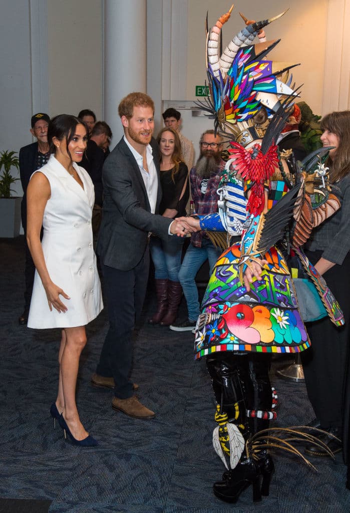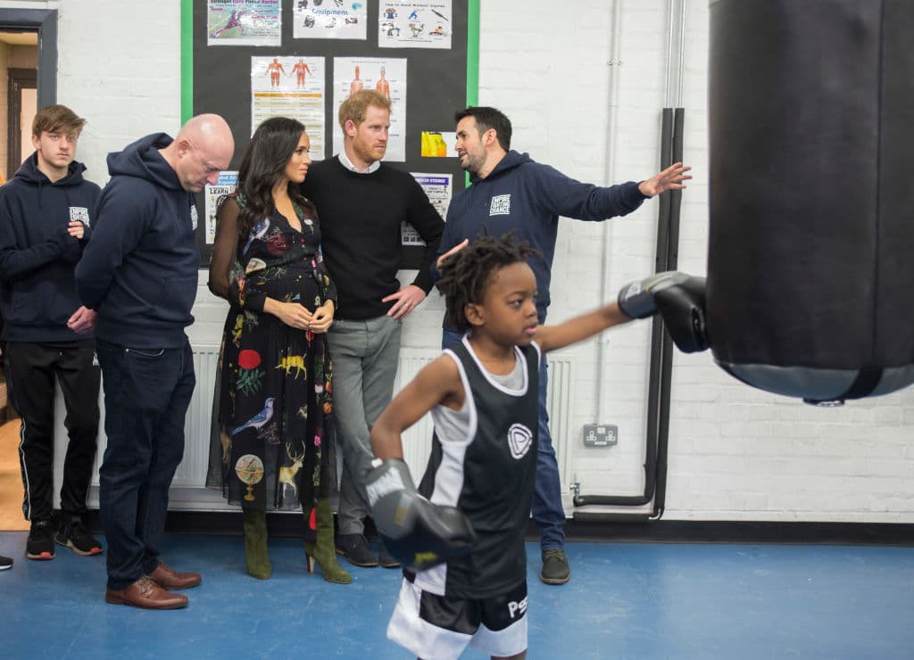 Sin embargo, la sorpresa del look de Meghan estaría debajo de su abrigo. Porque la duquesa deslumbró con un vestido midi negro y un estampado colorido de animales. El modelo de Oscar de la Renta quizá sea uno de los más sensuales que haya usado la actriz hasta el momento, pues tenía un pronunciado escote.