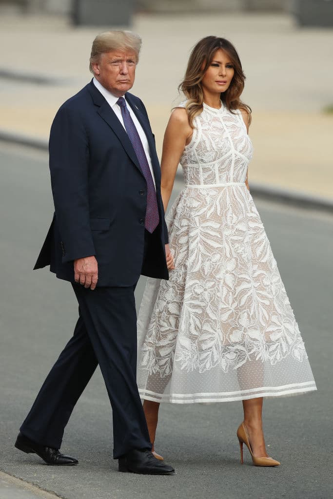 Trump emprendió una gira por Europa y su pareja, Melania Trump, lo acompañó. Su primera parada fue Bélgica. Fue en Bruselas donde Melania sorprendió con un vestido blanco con bordados de Elie Saab.