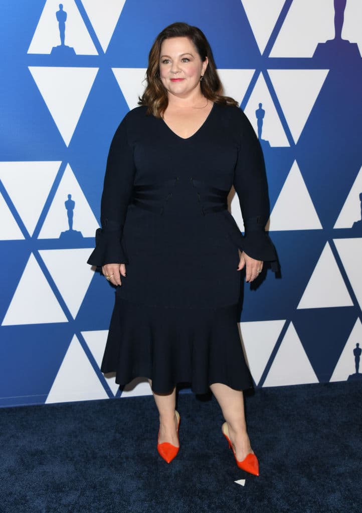Se desarrolló el almuerzo previo a los Oscar 2019 junto a los nominados. Melissa McCarthy asistió, por estar nominada como mejor actriz, con un vestido azul marino que resaltó sus curvas y, sobre todo, su cintura.