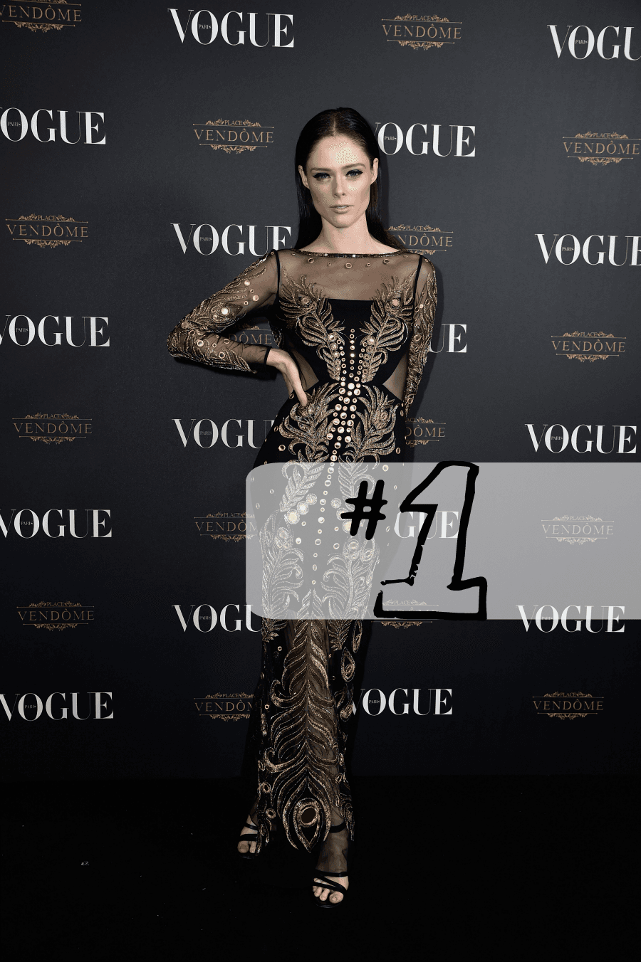 La modelo Coco Rocha también lució súper chic con un vestido negro con transparencias y un bordado en dorado de Temperley London. Lo combinó con unas sandalias negras de tiras, el cabello hacia atrás y unos smokey eyes. Un look muy elegante, sofisticado y a la moda. ¡La mejor vestida de la semana!