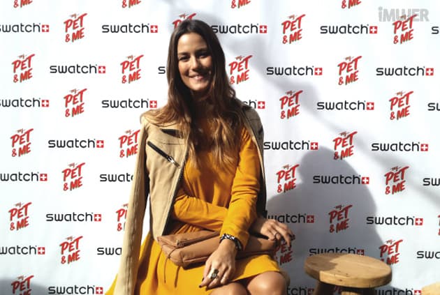 Emilia posó con Andy Baby, la perrita de Swatch, anfitriona del evento. La actriz llevó sus jeans rotos, un must en el placard de una buena fashionista.