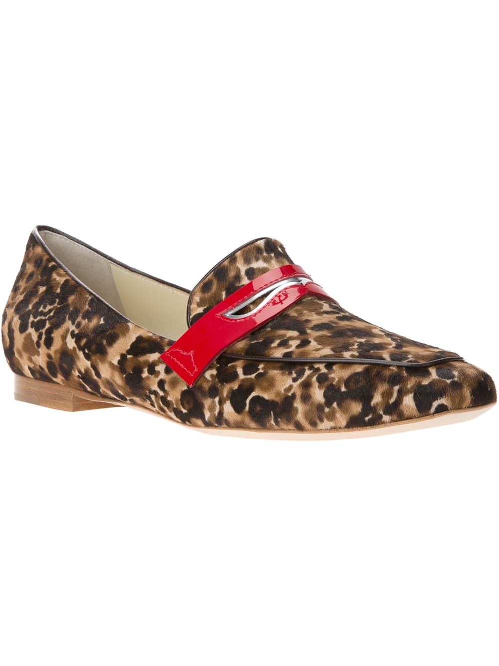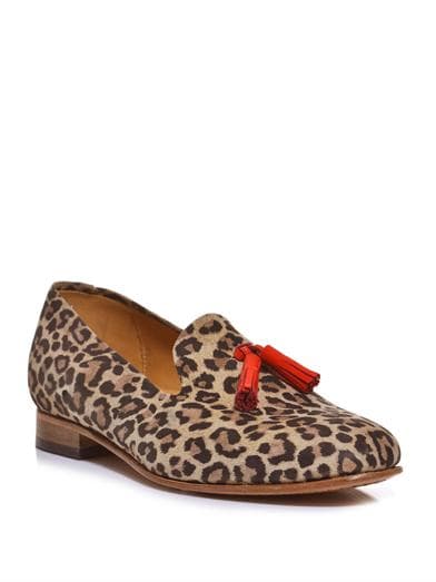 Estos mocasines de Rupert Sanderson con estampado de leopardo y detalle en rojo son una gran opción.