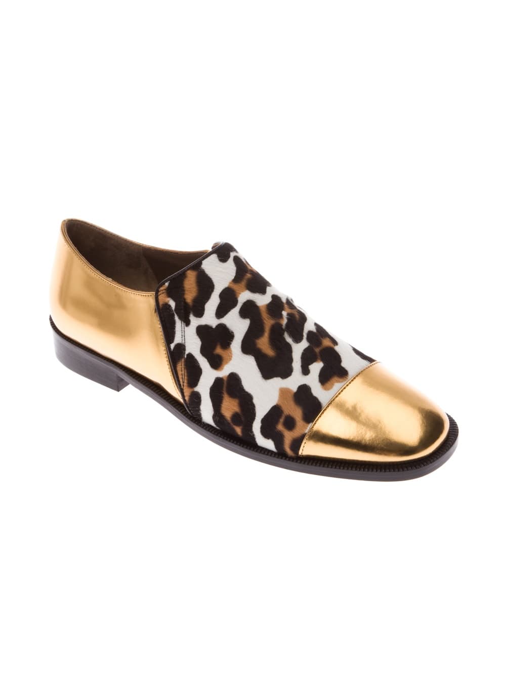 El dorado es otro color que se ha vuelto tendencia y luce muy bien combinado con un estampado animal print. Como estos mocasines de Marni, ideales para darle a tu look casual un toque moderno y de glamoroso.